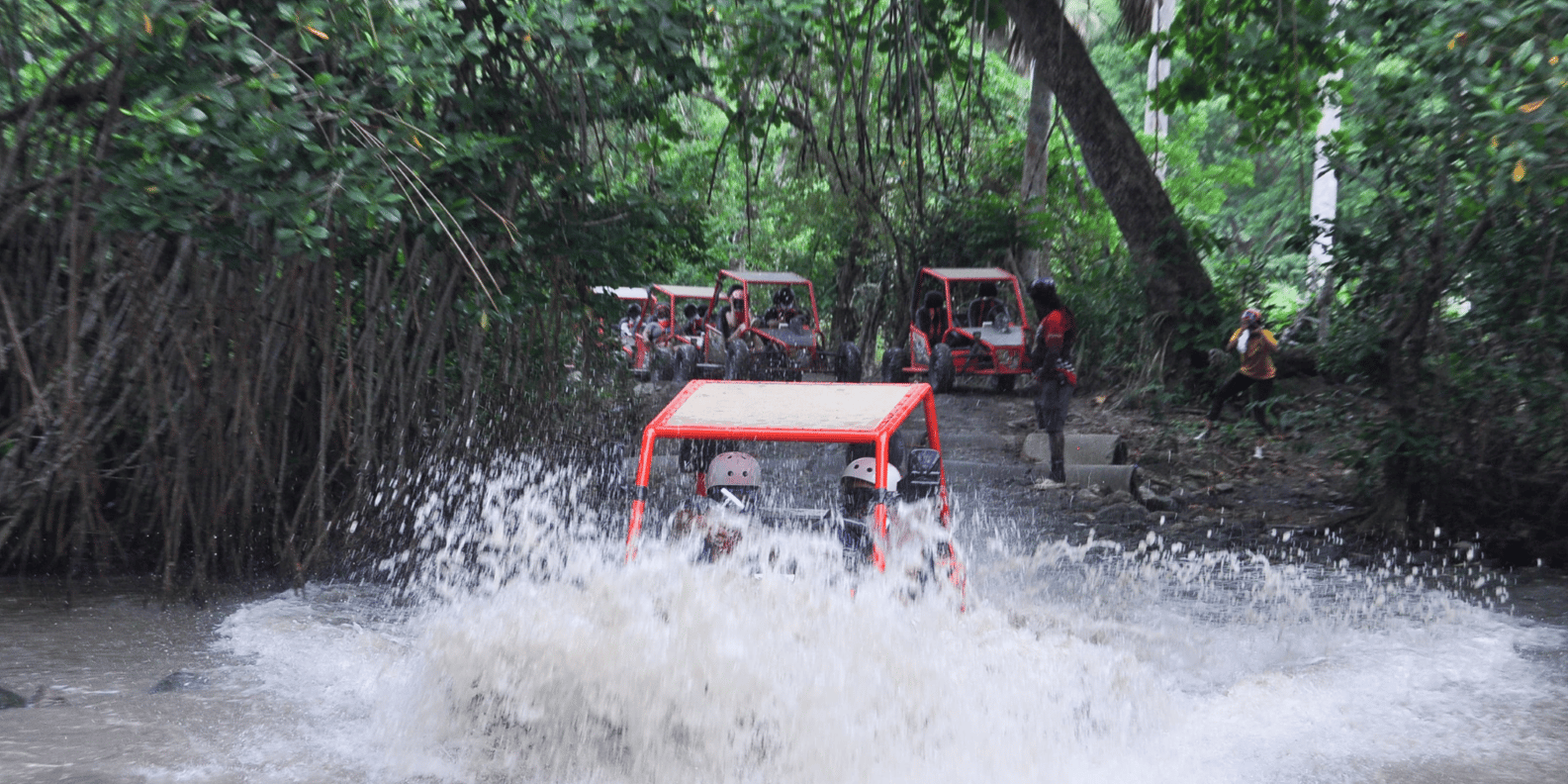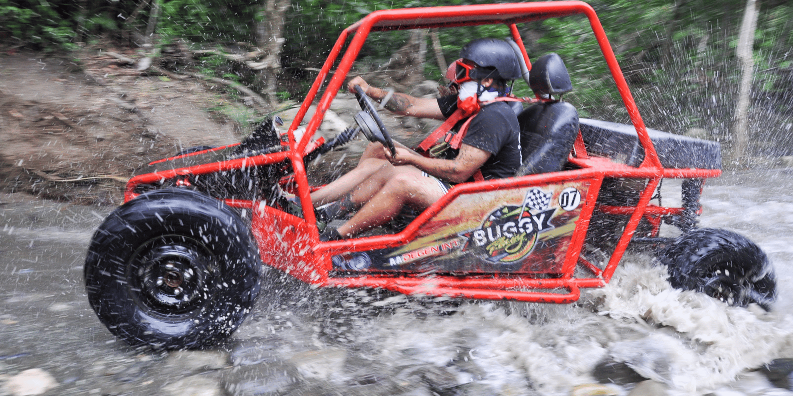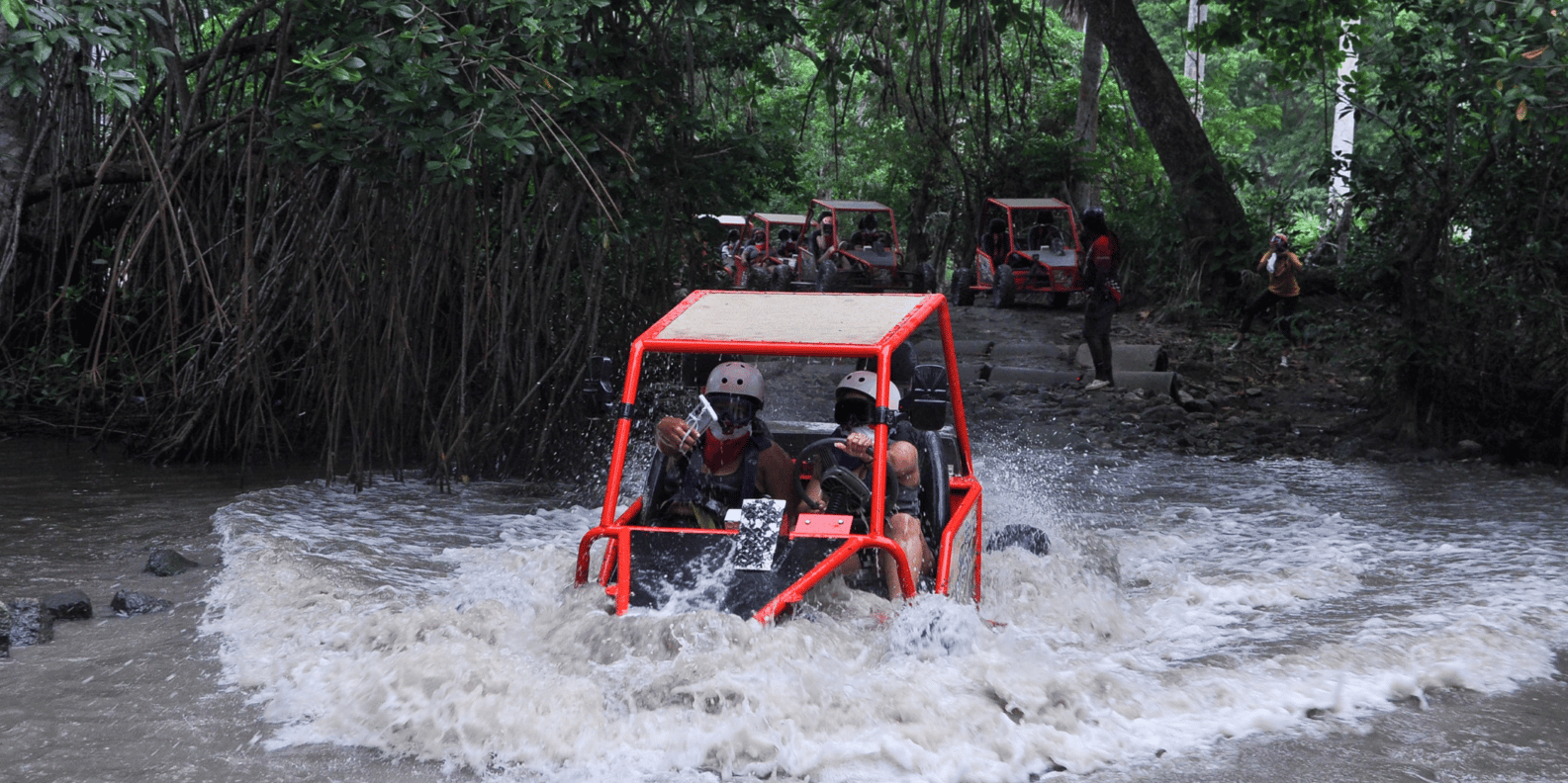 Feel the exciting adventure of this tropical paradise on the all-terrain two-person Buggies! and splash over the Damajagua Waterfalls.
