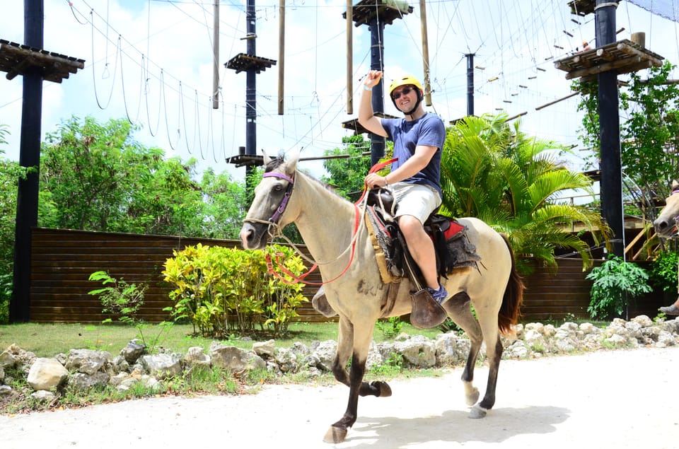 Fly through our 6-circuit Punta Cana zipline course and into our mega splash pool. Take a scenic horseback ride in Punta Cana through nature.